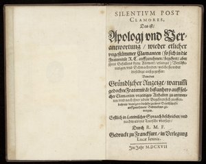 Silentium post clamores, das ist, Apologi und Verantwortung