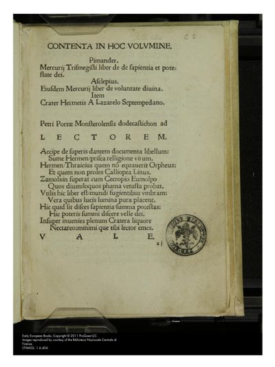Hermes Trismegistus; Ficino, Marsilio (translator); Lefèvre d'Étaples (editor)