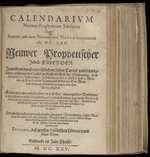 Calendarium novum-propheticum jubilaeum [...]. Neuwer prophetischer Jubell-Calender [...] Postilion, dess grossen himmlischen Löwens unnd seiner Seher